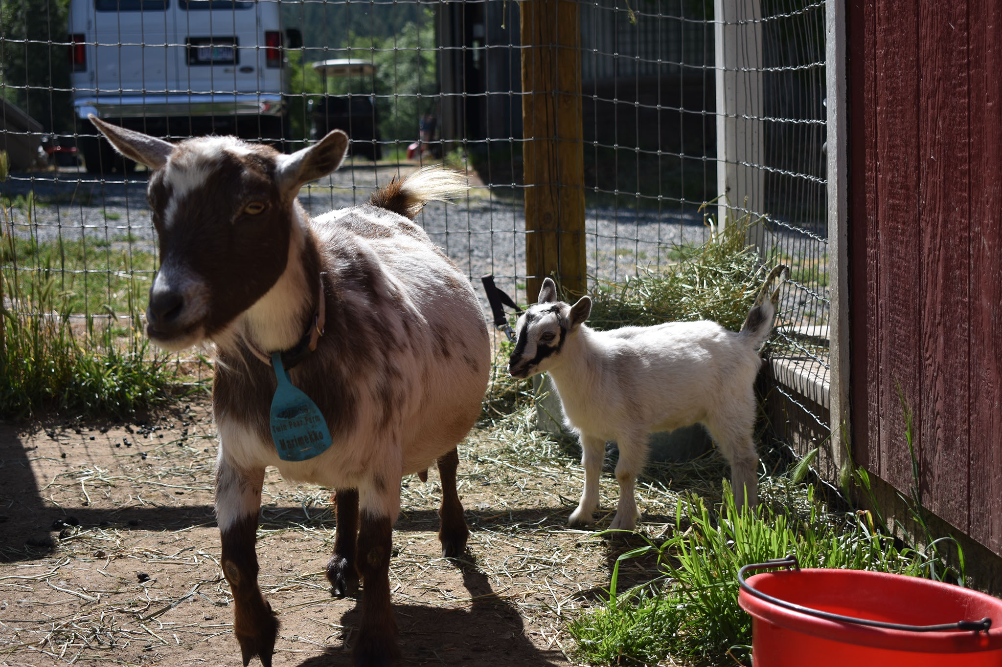 Twin Pear Farm, located in Jacksonville, Oregon is a growing Nigerian Dwarf goat farm. Recently, Grange Co-op had the opportunity to visit the farm at milking time, go on a tour, and learn about their daily practices. The owner of ‘Twin Pear Farm’, Westi Haughey, explained that the name came from the two old pear trees located together on their property. History shows these twin pear trees are at least from the 1880’s and represent the pears that are a staple of the Rogue Valley. ‘Twin’ in the name was not only for the two pear trees but for Westi’s own twin kids, not to mention Nigerian Dwarf goats usually have at least twins! This is how ‘Twin Pear Farm’ came to be named.